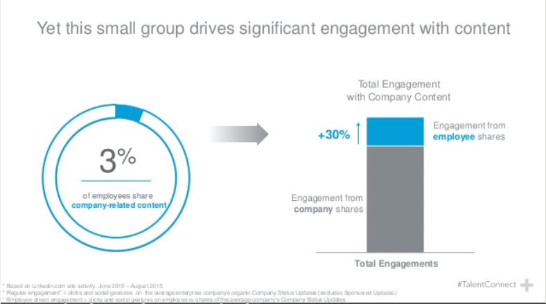 When your employees do share your company’s content – something that’s not likely to happen without motivation, only about 3 percent of employees share company-related content – you are looking at a healthy boost of customer engagement.