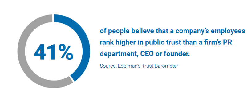 But, here’s where employee activation becomes really monumental if you get it right. Your buyers trust your employees, possibly more than upper management, the PR department, or general brand messaging.