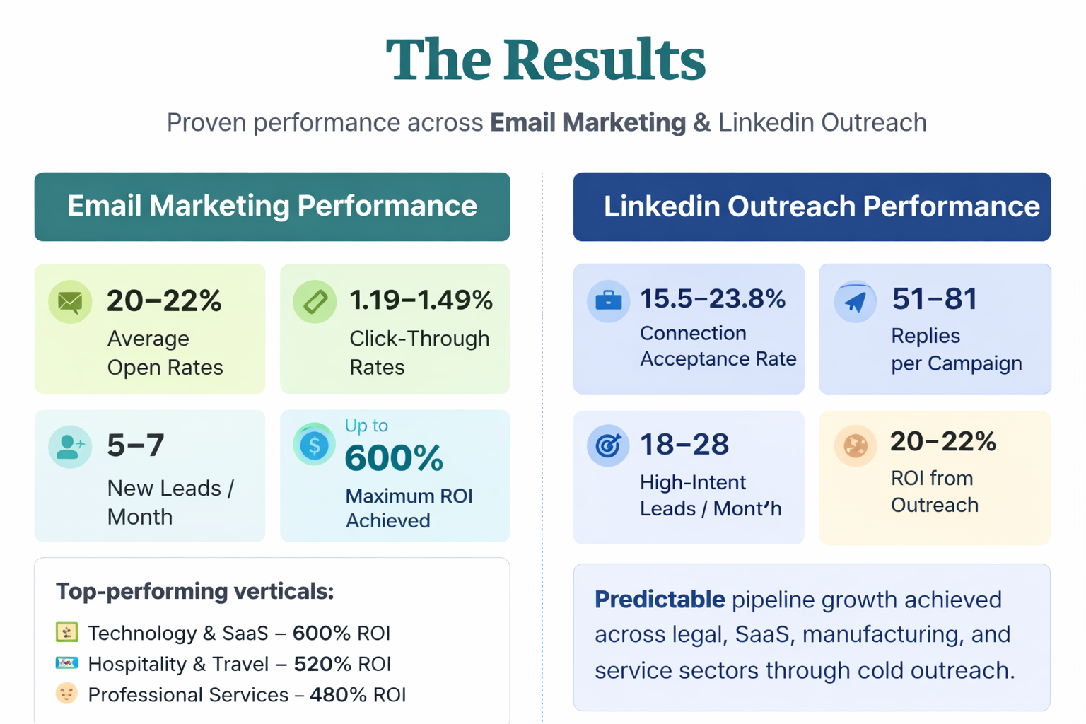 Measurable outcomes delivered across Email Marketing & LinkedIn Outreach