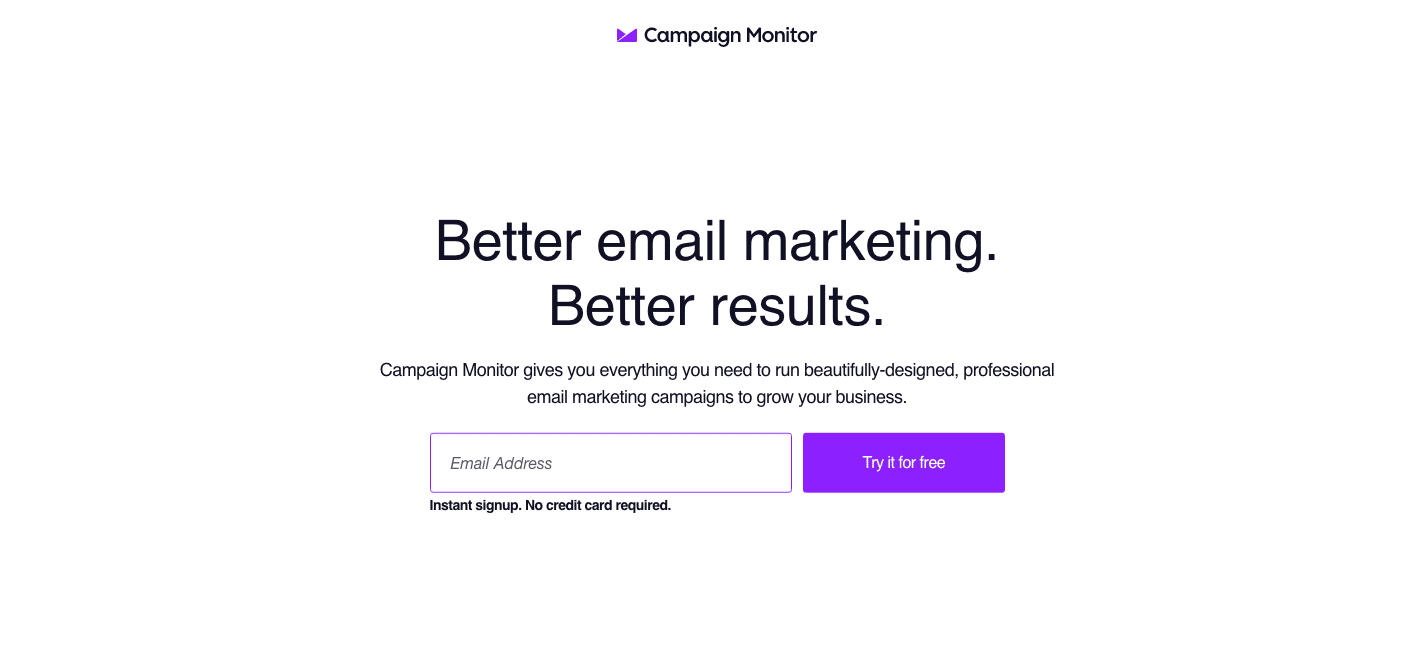 Minimal does not mean ineffective. Email marketing software company Campaign Monitor states their offer clearly and draws all attention to the email collection form.