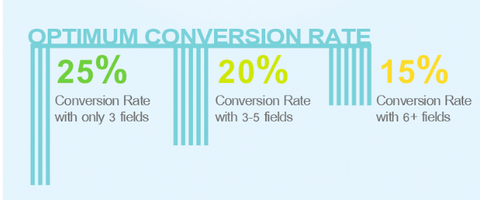 Research by Quicksprout shows that forms with three fields achieve the optimum conversion rate of 25% and this conversion rate decreases as the number of form fields increases.