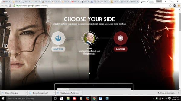 TheDisneyBlog.com reports that “A new promotion between Disney and Google encourages Star Wars fans to choose the dark side or the light to customize their Google experience. Soon there will be a Virtual Reality App to use within Google Cardboard Virtual Reality that will include new immersive experiences. All this to celebrate Lucasfilm’s much-anticipated ‘Star Wars: The Force Awakens.’”